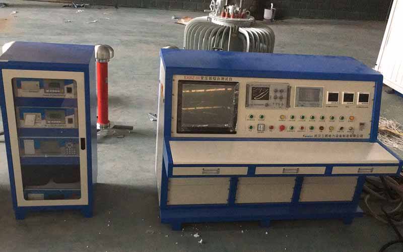 請接好試驗電源,本測試臺采用三相四線接線,試驗電源電流必須保證在50A以上(本試驗臺配套的是30KVA調(diào)壓器,如被試品高壓側(cè)額定電流大于40A時,請另配大容量調(diào)壓器,試驗電源電流也相對加大)。在做每相試驗時請先接好被試品與測試臺的測試連接線和地線,然后在打開測試臺的電源開關(guān)